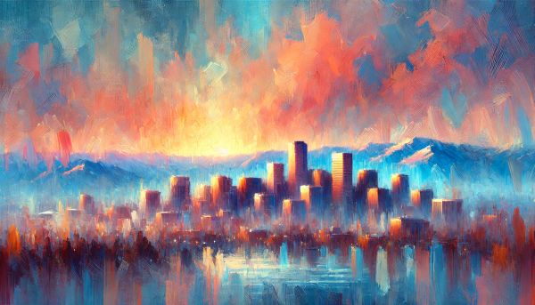 Sunrise Embrace: Impressionist Vision of Denver's Skyline and Mountains