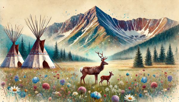 Title: Surreal Blanca Peak and Native American Tipis with Wildlife Photo ID: 57118 |