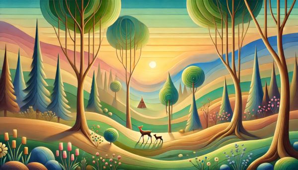 Title: Dream-like Interpretation of a Surreal Denver Forest in Cubist Style Photo ID: 57369 |