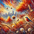 Autumn in Denver: A Vibrant Feathered Skyline Art Interpretation