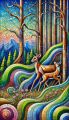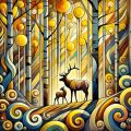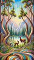 Enchanted Woodland: A Stained Glass Style Forest with Curious Deer