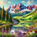 Vibrant Artistic Interpretation of Aspen, CO with Stunning Mountain Backdrop
