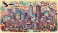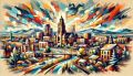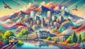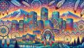 Vibrant Artistic Interpretation of Denver's Iconic Skyline and Landscapes