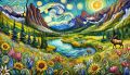 Cubist Reflections of Rocky Mountains: A Van Gogh-Inspired Vision