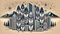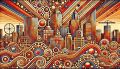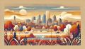 Cubist-Inspired Landscape of Denver's Skyline in Native American Patterns