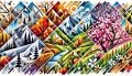 Mystical Journey Through Whimsical Seasons: A Cubist Wonderland