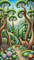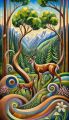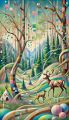 Enchanted Forest and Wildlife Interaction in Cubist Denver Art Print