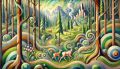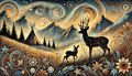 Surreal Forest Scenery with Stylized Deer and Dreamy Landscapes