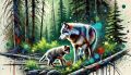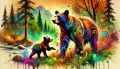 Colorful Expression of Nature: A Black Bear and Cub in Colorado