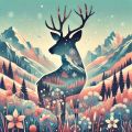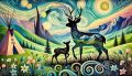 Enchanting Colorado Nightscape with Mule Deer and Colorful Florals