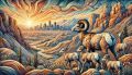 Sunrise Over Denver: Bighorn Sheep Amidst a Painted Landscape