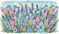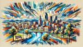 Vibrant Artistic Interpretation of Denver's Skyline Amidst Nature