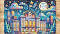 Colorful Nighttime Illustration of Denver's Union Station for Kids