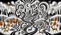 Surreal Monochrome Landscape Combining Cubism and Dada Elements