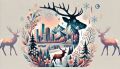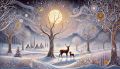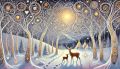 Enchanted Winter Night: Deer Amidst Snowy Whimsical Forest