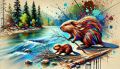 Vibrant Color Splash: A Mother Beaver and Her Kit in Colorado