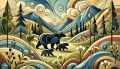 Cubist-Inspired Black Bears Roaming the Vibrant Denver Wilderness