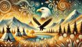 Majestic Eagle Over Dreamlike Colorado Landscape in Artistic Illustration