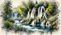 Bridal Veil Falls - A Vivid Impressionist Watercolor Painting