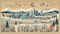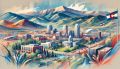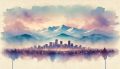 Enchanting Watercolor Panorama of Denver Skyline and Rockies