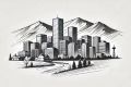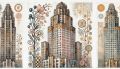 Artistic Representation of Denver's Skyline with Cubist and Art Deco Influences