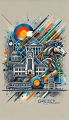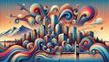 Vibrant Art Deco Fusion: Cubist Rendition of Denver's Skyline