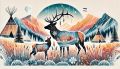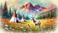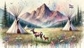 Enchanting Watercolor of Longs Peak with Native American Tipis and Wildlife