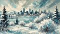 Wintry Artistic View of Denver's Skyline Under Snow-Capped Peaks
