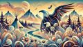 Majestic Bald Eagles Over Serene Colorado Landscape Illustration