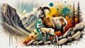 Rocky Mountain Bighorn Sheep in a Vibrant Color Splash Landscape