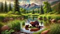 Serene Denver Wilderness: Beaver Family Beside a Tranquil Pond