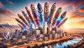 Enchanting Native American Feather Motifs Depicting Denver's Skyline
