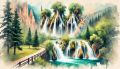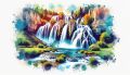 Vibrant Watercolor Interpretation of Rifle Falls State Park, Colorado