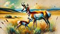 Colorful Pronghorn Antelope and Fawn in Denver's Grasslands