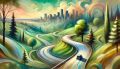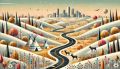 Surreal Denver Sunset: A Cubist-Inspired Winding Road Through Seasons