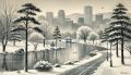 Winter's Embrace in Denver's City Park: A Sumi-e Perspective