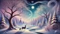 Enchanted Winter Night: Deer under Moonlit Snow-Covered Trees