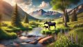 Serene Denver Landscape: Moose and Calf Amidst Wildflower Meadows