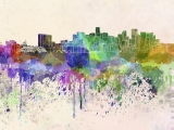 Vibrant Watercolor Interpretation of Denver Skyline at Dawn