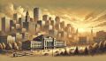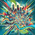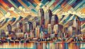 Vibrant Decopunk Interpretation of Denver’s Skyline with Cubist Influences
