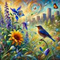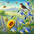 Vibrant Expression of Spring in Denver: Flora, Fauna, and Urban Skyline