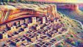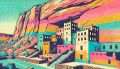 Vibrant Pastel Pop Art Interpretation of Mesa Verde Cliff Dwellings