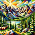 Surreal Visions of the Rockies: A Cubist-Inspired Landscape Exploration