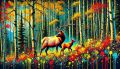Autumnal Brilliance: Cubist Elk in a Textured Colorado Forest