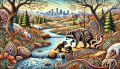 Vibrant Artistic Interpretation of Denver's Iconic Skyline and Landscapes