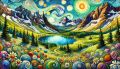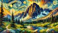 Cubist Reflections of Rocky Mountains: A Van Gogh-Inspired Vision