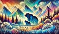 Dreamy Colorado Landscape with Mother Bear and Cub Silhouette