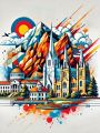 Artistic Interpretation of Denver’s Skyline and Union Station in Colorful Strokes