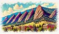 Vibrant Watercolor Pop Art of Boulder's Flatirons and Cityscape