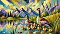 Vibrant Cubist Interpretation of Canada Geese in a Colorado Landscape